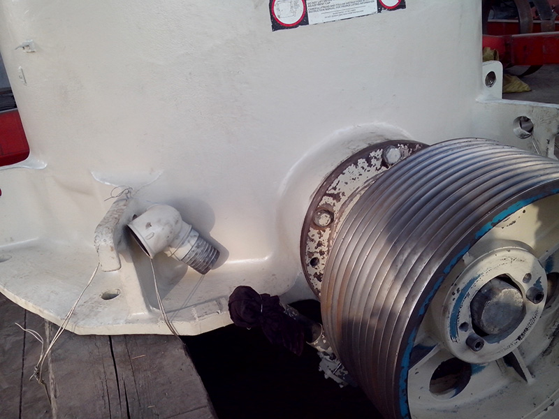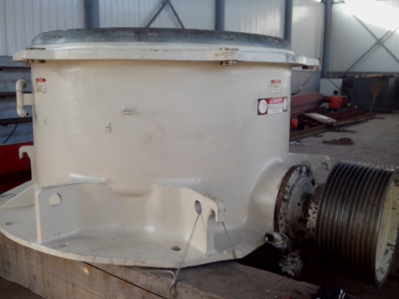 2014-06-08 客戶HP500 破碎機(jī)運(yùn)行中發(fā)生主軸斷裂,運(yùn)到我公司進(jìn)行維修。我司技術(shù)人員拆除主軸后發(fā)現(xiàn)主軸錐孔超差,然后對(duì)主機(jī)架進(jìn)行補(bǔ)焊、重新加工,最后安裝新主軸。