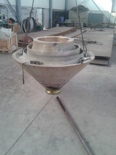 2014-08-25客戶HP500圓錐破碎機(jī)動錐體自行更換球頭時,由于安裝不到位,導(dǎo)致無法運(yùn)行,運(yùn)到我公司維修。由我司技術(shù)人員拆除球頭,重新安裝成功。