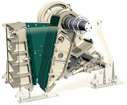 LCC 系列顎式破碎機(jī)都裝備有雙楔塊排礦口調(diào)整系統(tǒng),其堅(jiān)固且調(diào)整快捷的優(yōu)勢在行業(yè)內(nèi)已經(jīng)得到證明,該系統(tǒng)在對于由于供電中斷導(dǎo)致系統(tǒng)帶負(fù)載停機(jī)而需要清腔時(shí)尤其有效;橡膠減震裝置和限位塊可以吸收震動(dòng)峰值載荷,并允許破碎機(jī)垂直和縱向位移,從而有效地降低破碎機(jī)對基礎(chǔ)的沖擊;電機(jī)機(jī)座與破碎機(jī)機(jī)架一體安裝,減少了破碎機(jī)安裝空間和 V 形帶的長度。