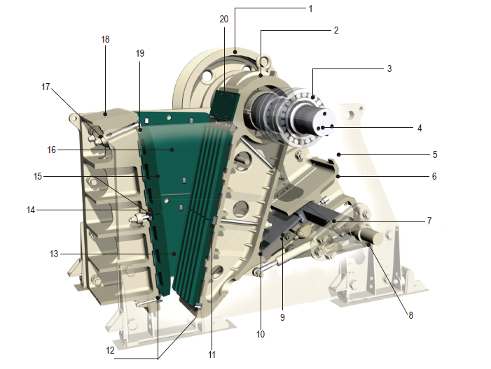 LCC 系列顎式破碎機(jī)采用了獨(dú)特的模塊式、無焊接框架結(jié)構(gòu),兩塊熱軋鋼側(cè)板通過精密加工的緊固螺栓與高質(zhì)量鑄鋼機(jī)架牢固地栓接在一起;動(dòng)顎總成采用高質(zhì)量的鑄鋼件構(gòu)成,通過兩個(gè)大型鑄鋼飛輪傳動(dòng);鍛造的重型偏心軸和四個(gè)同等規(guī)格的大型球型滾動(dòng)軸承,使之具有超凡的可靠性;迷宮式密封保護(hù)軸承中的潤滑油脂不被污染;整體鑄鋼軸承箱能夠保證與破碎機(jī)架完全配合,并且還能避免對軸承架造成過大的負(fù)荷。